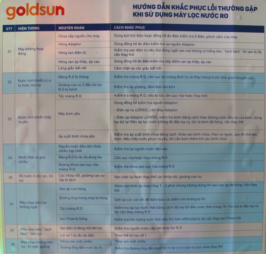 Máy Lọc Nước RO Goldsun Gold FA160 (9 Cấp Lọc) - Màu Ngẫu Nhiên - Chính Hãng cung cấp nước sạch cho sinh hoạt như: nấu ăn…mang lại sự an toàn khi sử dụng trực tiếp nước máy. Máy lọc nước làm giảm nguy cơ mắc bênh đường tiêu hóa như loại bỏ các loại vi khuẩn Asen, Amip…gây tiêu chảy từ nước uống.