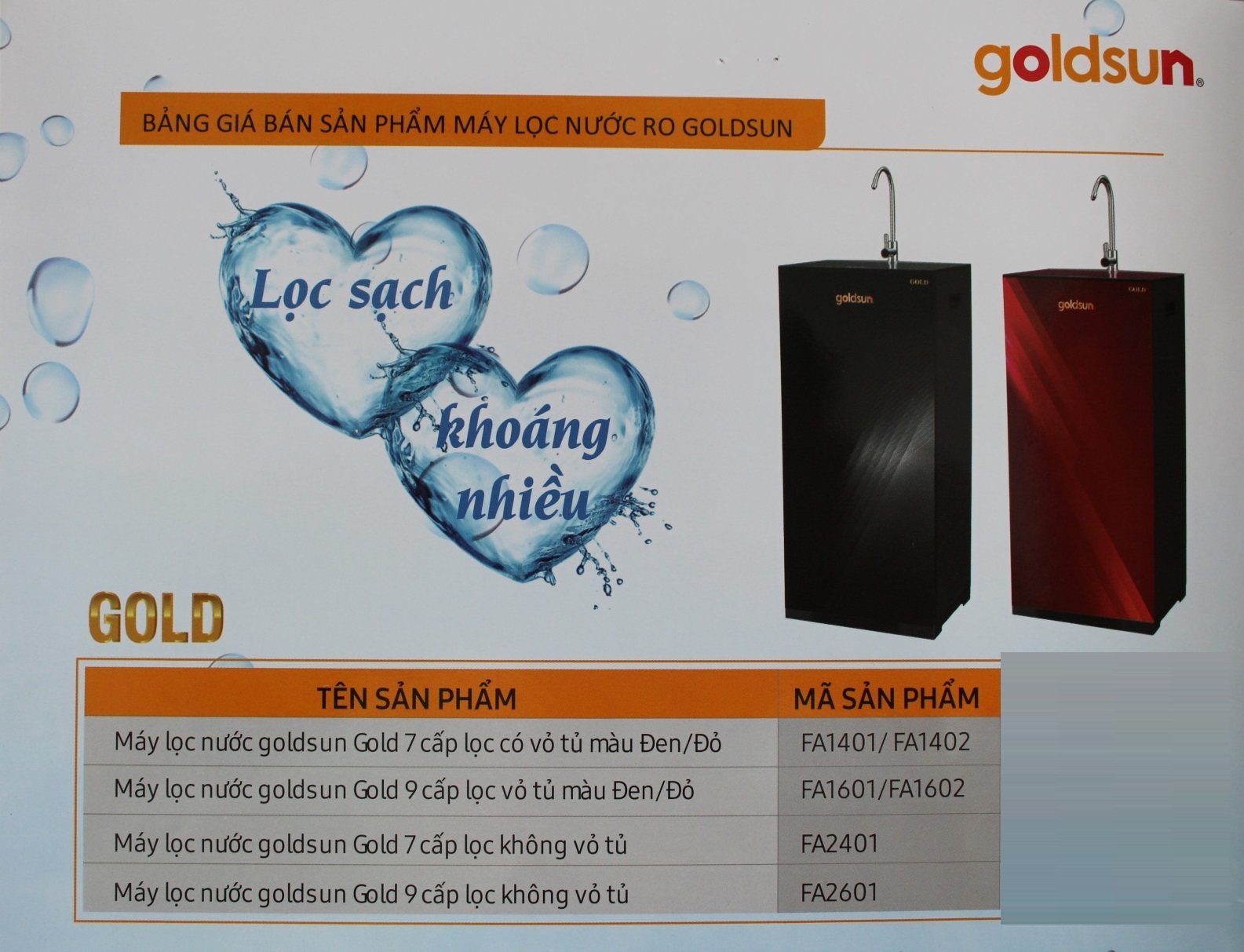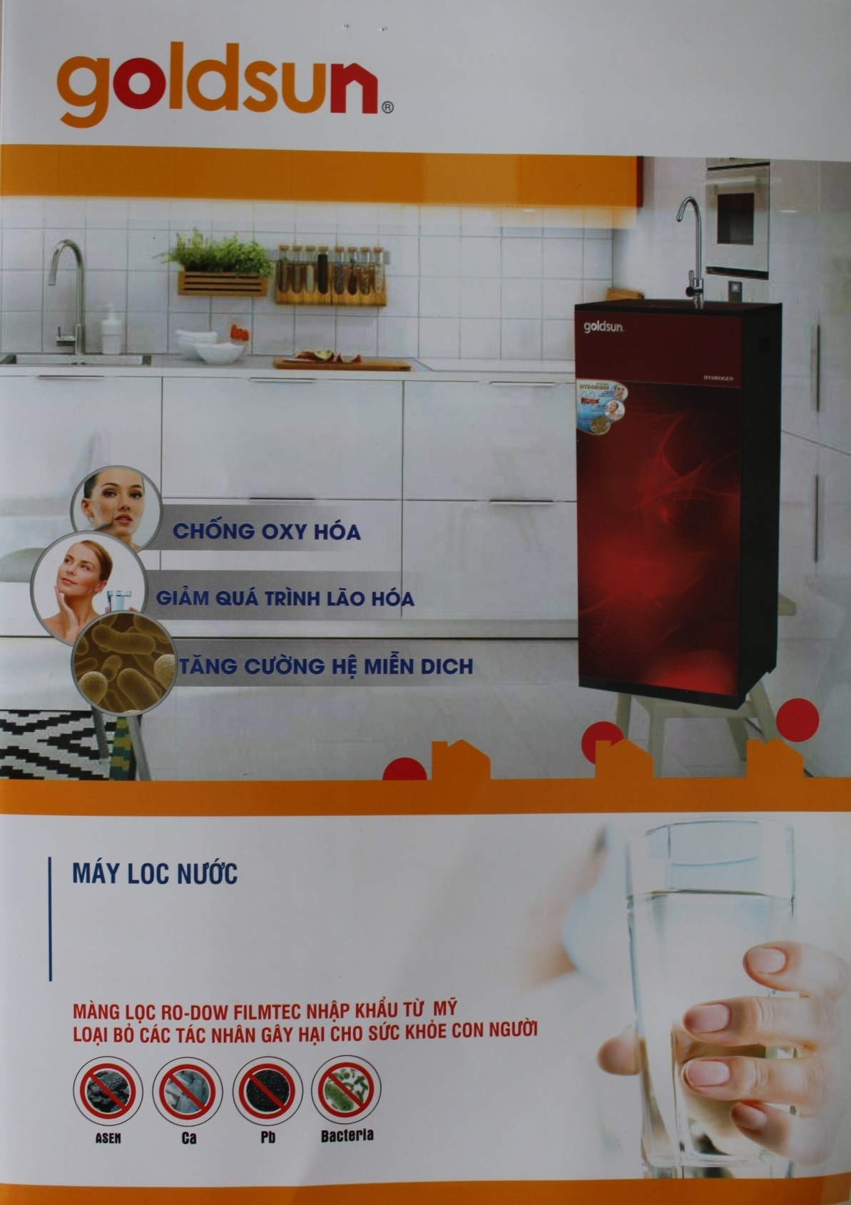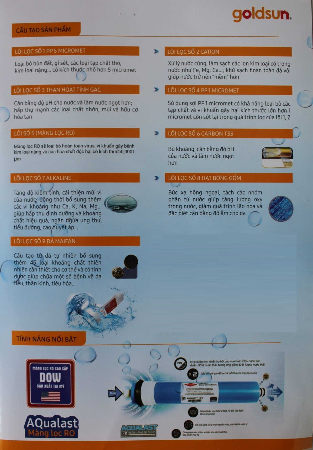 Máy lọc nước Goldsun Gold là dòng máy lọc nước sử dụng công nghệ RO có màng lọc RO Dow - Filmtec nhập khẩu từ Mỹ , với 9 cấp lọc đặc biệt không những mang đến nguồn nước tinh khiết mà còn đảm bảo các khoáng chất cần thiết cho sức khỏe.