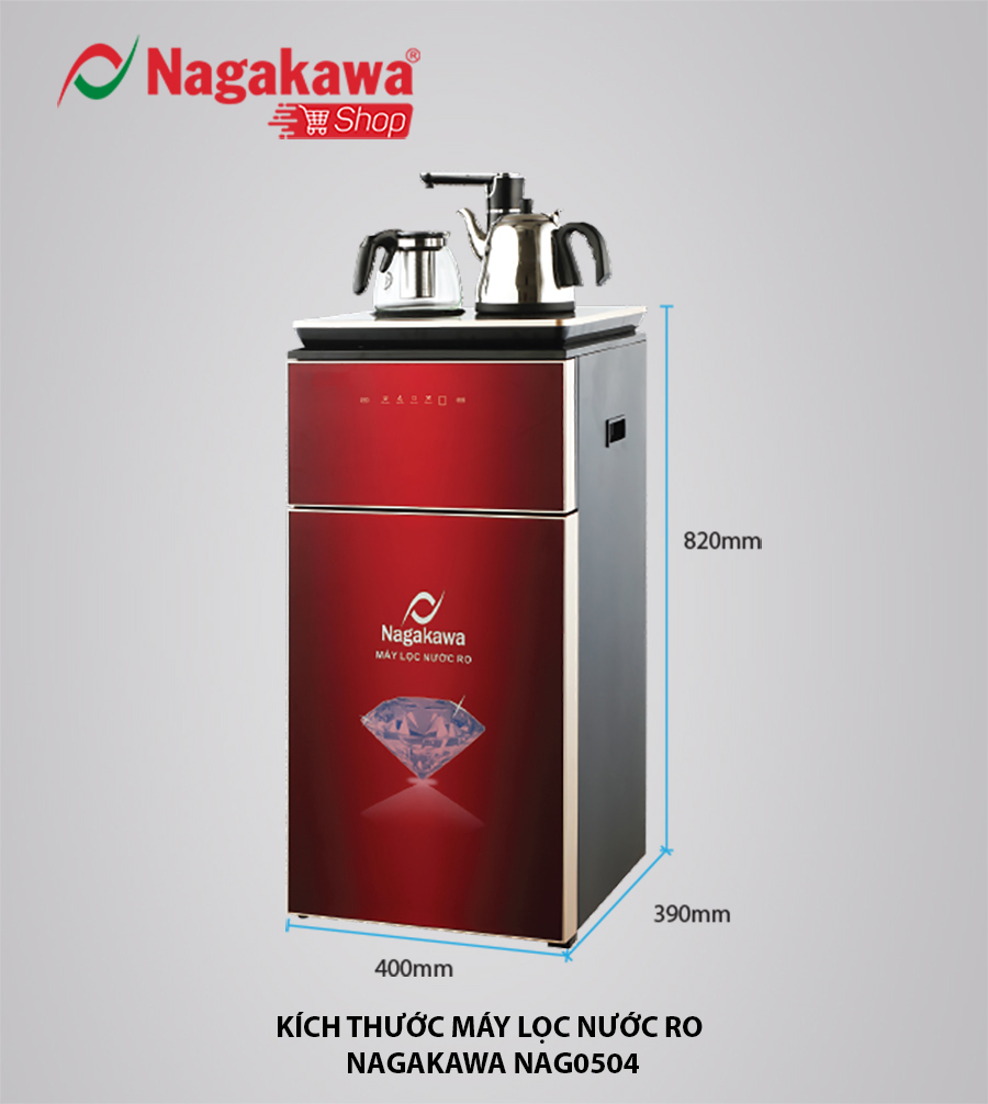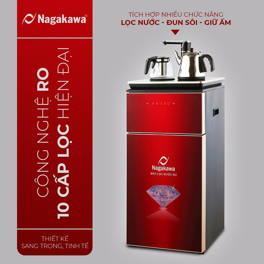 Máy Lọc Nước RO Nagakawa NAG0504 Đen Đỏ + Bình Giữ Nhiệt + Ấm Đun - Hàng Chính Hãng