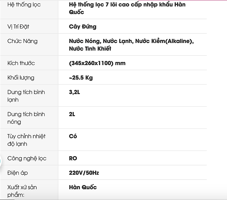 với công suất lọc 15 lít/giờ, cung cấp 2 lít nước nóng và 3.2 lít nước lạnh phục vụ thoải mái cho nhu cầu sử dụng tại gia đình, văn phòng…