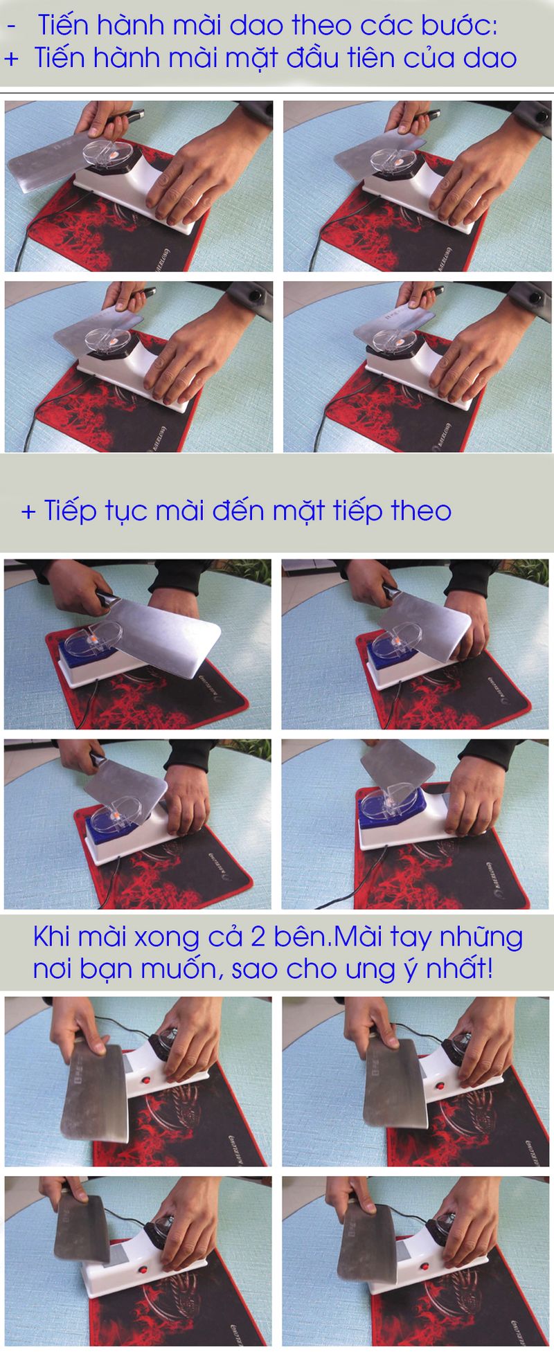Máy mài dao kéo không làm mất lưỡi dao, dễ dàng sử dụng, không mất nhiều thời gian: Chỉ với 5 – 8 giây dao kéo đã sắc ngọt và sáng bóng.