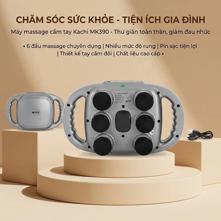 Máy Massage 6 Đầu Rung Kachi MK390 Chạy Pin - Giải Pháp Thư Giãn Tối Ưu Cho Cơ Thể - hàng chính hãng