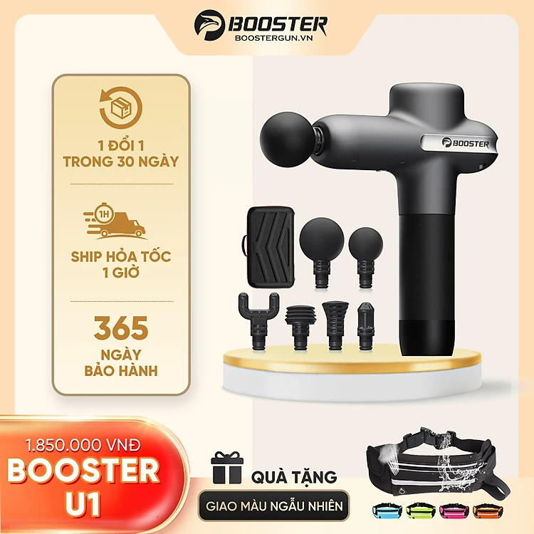 Máy Massage BOOSTER U1 thế hệ mới, Máy massage gun giảm đau mỏi toàn thân 8 Cấp độ , 6 Đầu Massage chuyên sâu - Công Suất 125W