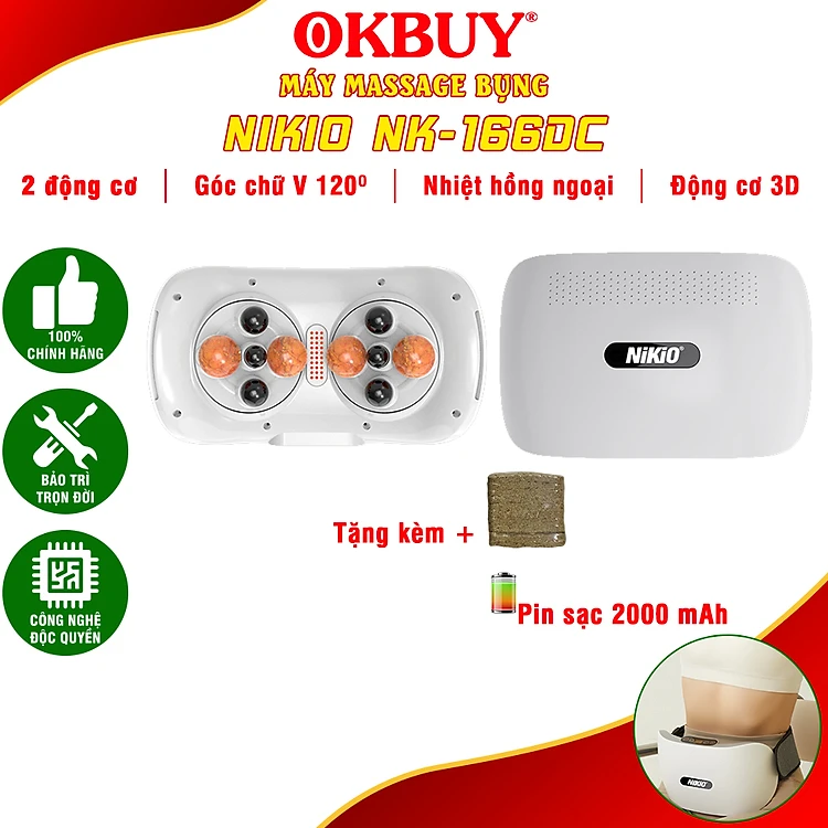 Máy Massage Bụng Cao Cấp Nikio NK-166DC - Công Nghệ Xoa Bóp Kết Hợp Nhiệt Hồng Ngoại, Động Cơ Matxa Kép, 3 Cường Độ Tùy Chỉnh, Pin Sạc Tiện Mang Đi Xa