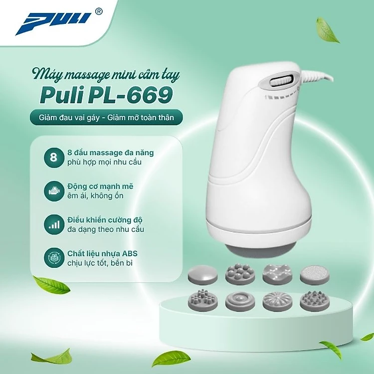 Máy massage cầm tay mini Puli PL-669 - 8 đầu, mát xa bụng và mát xa thư giãn toàn thân