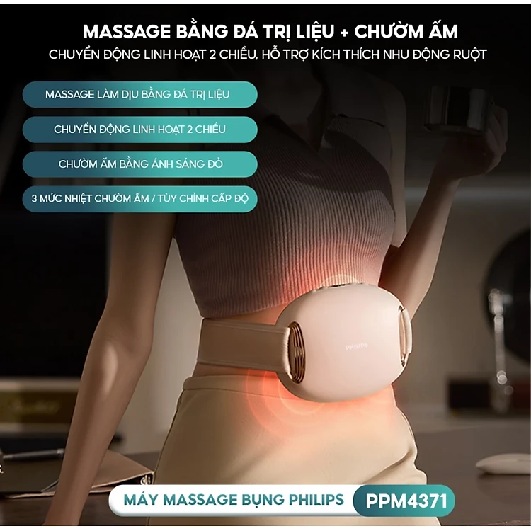 Máy Massage Bụng Philips PPM4371 - Massage Đa Năng - Chườm Ấm Ánh Sáng Đỏ - Hàng chính hãng