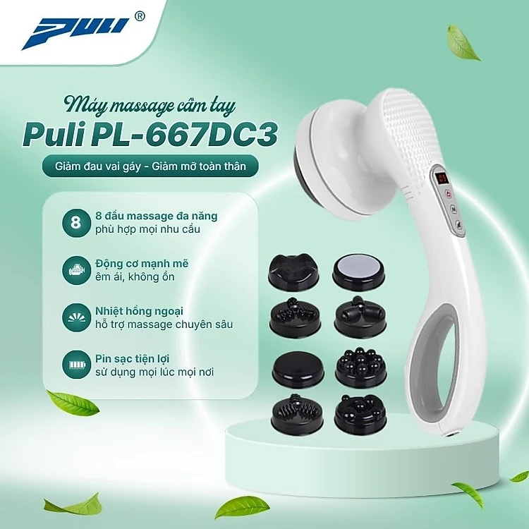 Máy massage cầm tay pin sạc 8 đầu, 5 chế độ, 6 tốc độ PULI PL-667DC3 - Mát xa hỗ trợ trị đau nhức mỏi toàn thân