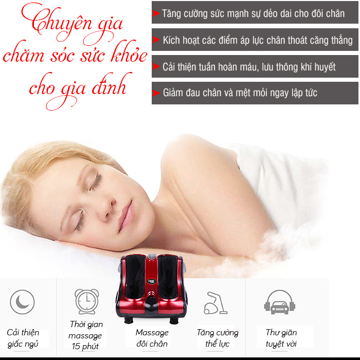 Công nghệ massage hoàn toàn mới từ Nhật Bản, cơ chế tác động 3 chiều, ôm trọn đôi chân của bạn đem lại hiệu quả nhanh chóng và cảm giác tuyệt vời như đang được đôi bàn tay con người thực hiện.