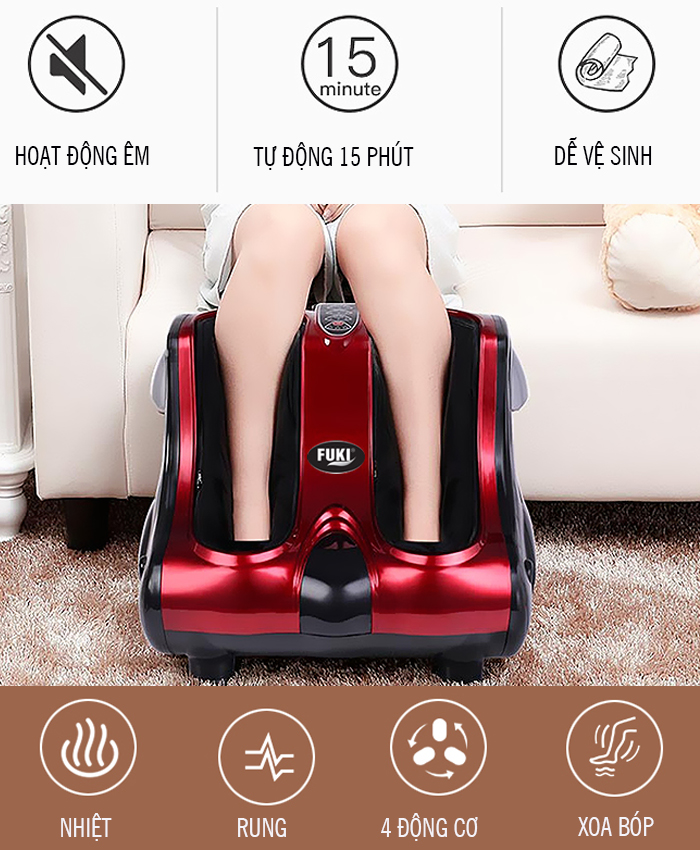 Máy massage chân hồng ngoại 3D Fuki FK-6890 (4 motor) một thiết bị chuyên biệt dùng để xoa bóp bấm huyệt cho đôi chân từ khu vực bắp chân đến bàn chân. Sản phẩm vô cùng tiện ích phù hợp nhu cầu chăm sóc sức khỏe tại gia của mọi lứa tuổi. Không chỉ có công dụng làm giảm đau nhức nhanh chóng mà còn góp phần cải thiện tuần hoàn máu, thư giãn mạch máu, phát triển tính linh hoạt của cơ bắp…