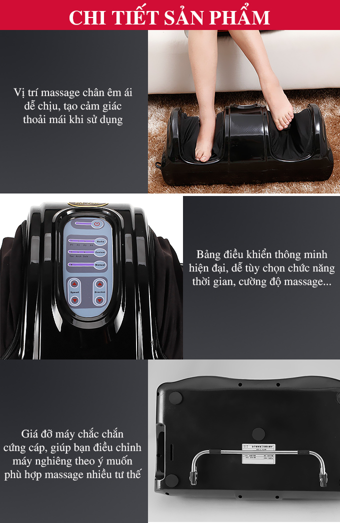Túi khí thực hiện động tác co bóp từ nhẹ nhàng đến mạnh mẽ. Bạn sẽ có cảm giác như đang được bàn tay con người massage trên bàn chân. Với công dụng làm giảm căng cơ, thư giãn cơ bắp, loại bỏ tê mỏi, hỗ trợ ngủ ngon và sâu giấc hơn,…