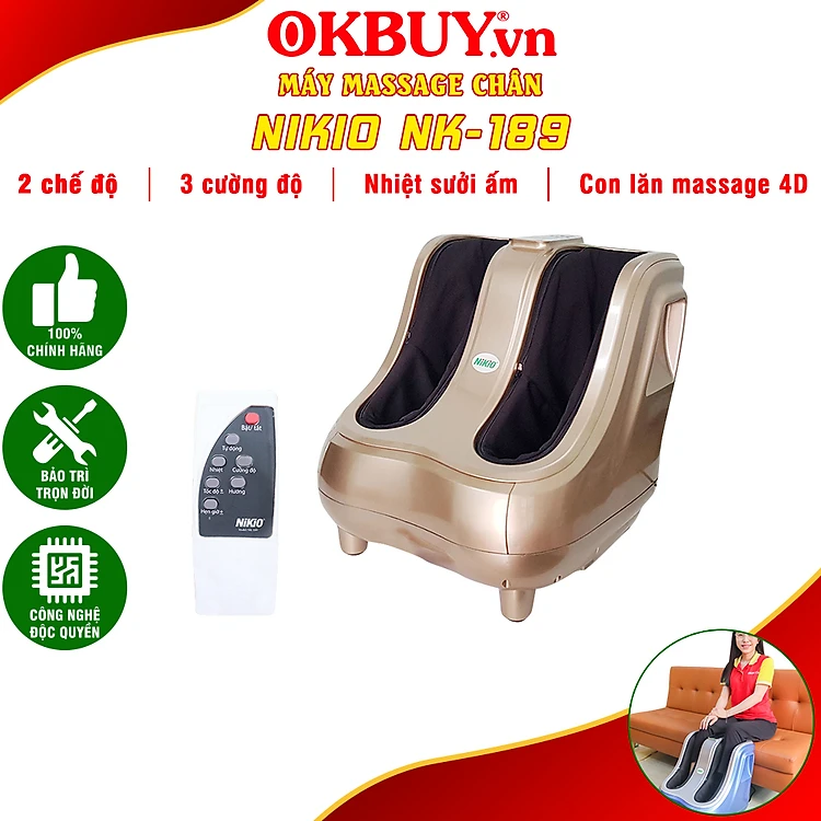 Máy Massage Chân Nhật Bản Nikio NK-189 (Dòng Cao Cấp) - Mát Xa Bàn Chân Và Bắp Chân, Xoa Bóp Dây Ấn Bằng Cao Su Non, Kết Hợp Rung Và Nhiệt Sưởi Đa Năng, Giảm Đau Nhức Chân, Tăng Tuần Hoàn Máu Cho Chân - Tươi Mới Đôi Chân