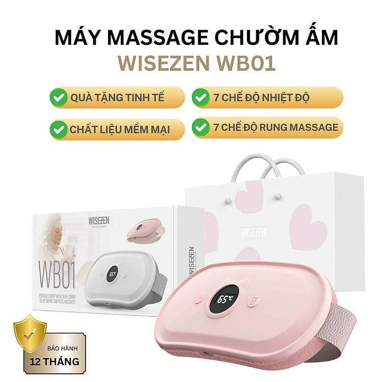 Máy massage chườm ấm WISEZEN WB01 – Điều chỉnh nhiệt độ 35-65℃, 7 chế độ rung, giảm đau bụng kinh hiệu quả