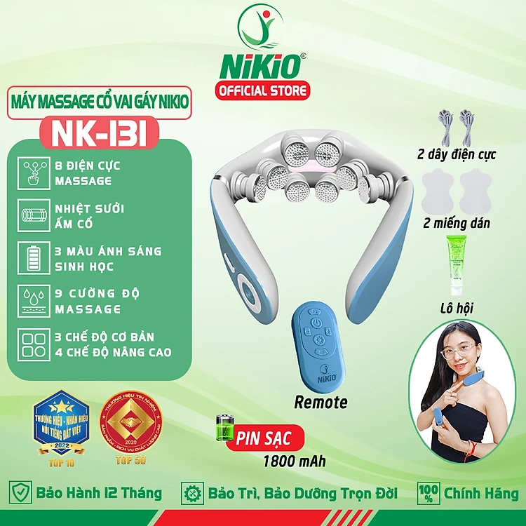 Máy massage cổ xung điện Nikio NK-131 - 8 điện cực, 2 miếng dán, HDSD bằng giọng nói