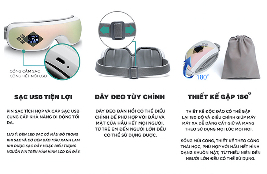 Hãy thử tưởng tượng sau những giờ làm việc và học tập căng thẳng, bạn được thư giãn với chiếc máy massage mắt này, sẽ không còn hiện tượng mệt mỏi, ủ rũ nữa.!