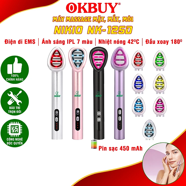 Máy massage mắt môi Nikio NK-125D - Thiết bị làm đẹp đa năng, công nghệ EMS, IPL, rung và nhiệt nóng