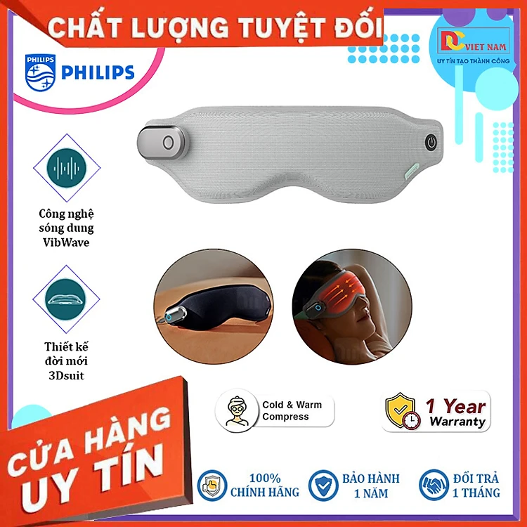 Máy massage mắt nóng và lạnh công nghệ 3Dsuit và VibWave. Thương hiệu Philips Hà Lan cao cấp