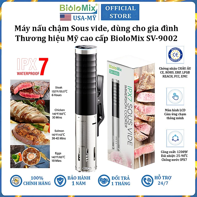 Máy nấu chậm Sous vide dùng cho gia đình thương hiệu Mỹ cao cấp BioloMix SV-9002 - Hàng Chính Hãng