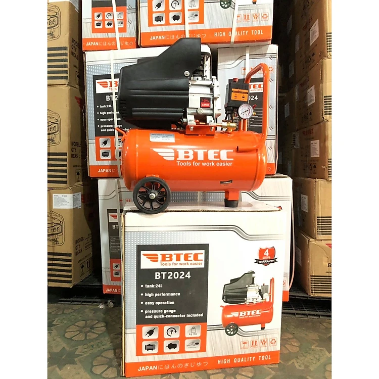 MÁY NÉN KHÍ CÓ DẦU BTEC BT-2024 2HP (1500W) 24 LÍT -HÀNG CHÍNH HÃNG (LÊN HƠI SIÊU NHANH, 100% DÂY ĐỒNG)