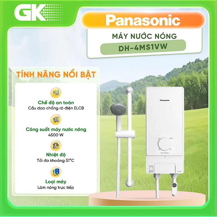 Máy Nước Nóng Trực Tiếp Không Bơm Panasonic DH-4MS1VW (4500W) - Hàng chính hãng