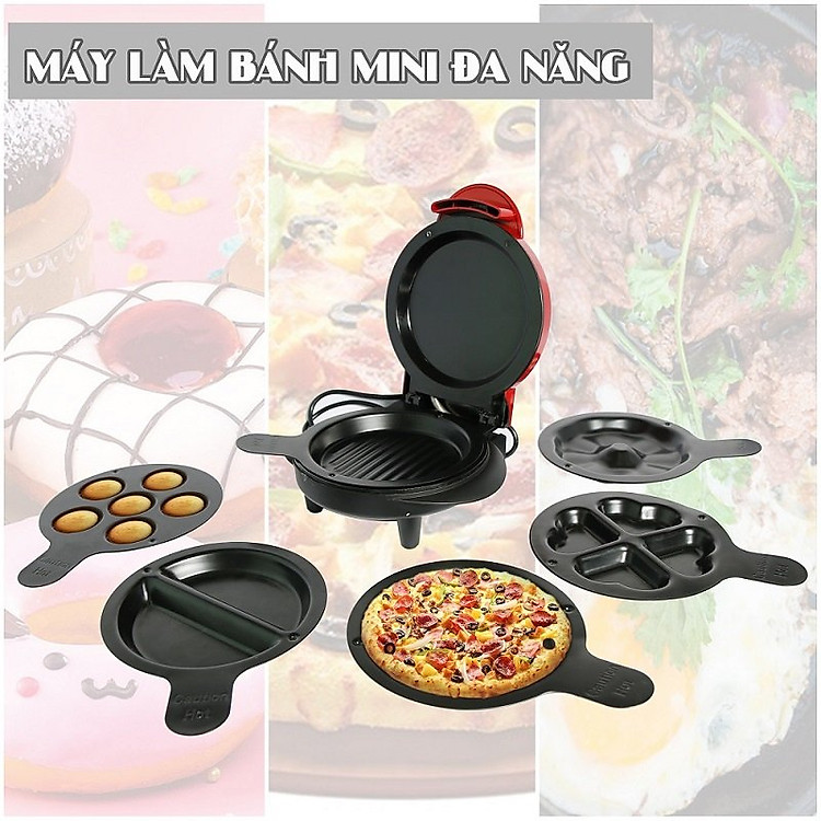Máy nấu nướng đa năng mini với vỏ máy bằng sắt sơn tĩnh điện, phủ lớp chống dính 02 mặt nên không cần nhiều dầu mỡ Chất liệu ruột bình làm bằng hợp kim chống rỉ, nồi nướng có hai mặt phát nhiệt giúp nướng nhanh tất cả các loại bánh, các loại thực phẩm trong thời gian vài phút. Thực hiện nướng nhanh các loại bánh như: Bánh táo,bánh phomat, bánh nhân nho, bánh cuộn,bánh sandwich, bánh kem chanh, bánh sữa Ngoài ra còn làm được các loại bánh như: Nướng bánh mì, bánh Piza, bánh ngô, bánh quy, chiên thịt bò với khoai tây và trứng, chiên trứ