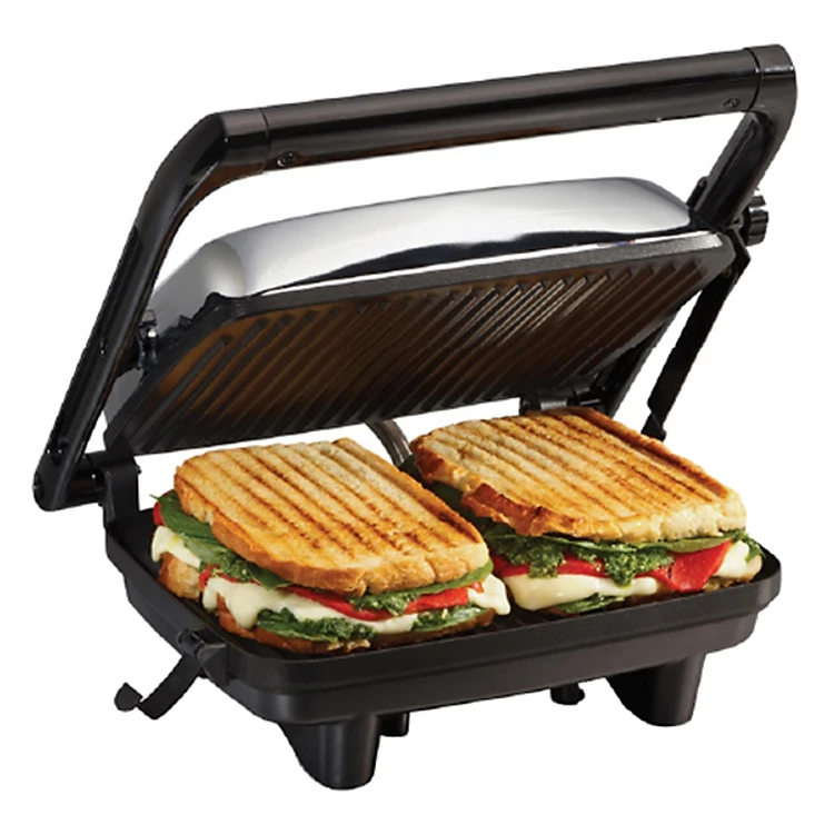 Máy Nướng THỰC PHẨM Hamilton Beach giúp bạn không còn cần lo ngại về độ dày nguyên liệu: Bạn sẽ an tâm tự làm món bánh với những nguyên liệu đa dạng, tuỳ theo sở thích của chính mình mà không lo sợ việc máy không thể nướng hết tất cả cùng lúc. Bản lề nổi và dày của máy sẽ ""ôm trọn"" chiếc bánh của bạn và biến chúng trở thành món ăn ngon lành.