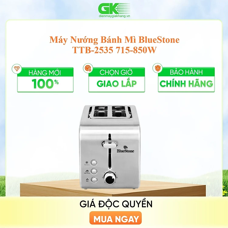 Máy Nướng Bánh Mì Bluestone TTB-2535, 2 Ngăn Công Suất 850W, Hàng chính hãng