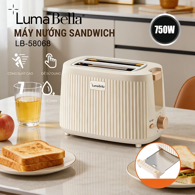 Máy nướng bánh mì tự nảy bánh công suất cao 750W Lumabella LB-58068, nướng bánh sandwich ăn sáng tiện dụng - DELIYA HÀNG CHÍNH HÃNG