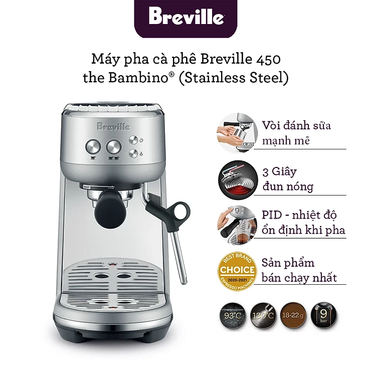 Máy pha cà phê Breville the Bambino BES 450 BSS - Hàng chính hãng