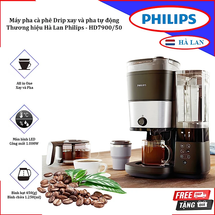 Máy pha cà phê Drip xay và pha tự động, thương hiệu Hà Lan cao cấp Philips - HD7900/50 - HÀNG NHẬP KHẨU