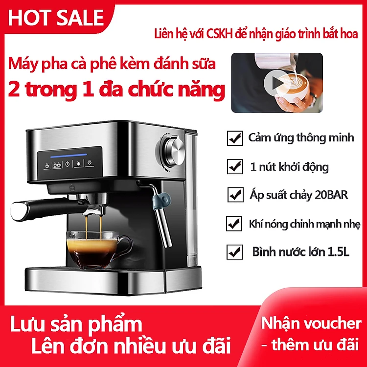 Máy Pha Cà Phê Espresso được thiết kế nhỏ gọn, đơn giản với nhiều ưu điểm vượt trội giúp cho bạn pha cà phê nhanh chóng và kết hợp với tông màu bạc, sang trọng và phù hợp với mọi không gian, rất thích hợp sử dụng cho gia đình và trong văn phòng nhỏ.