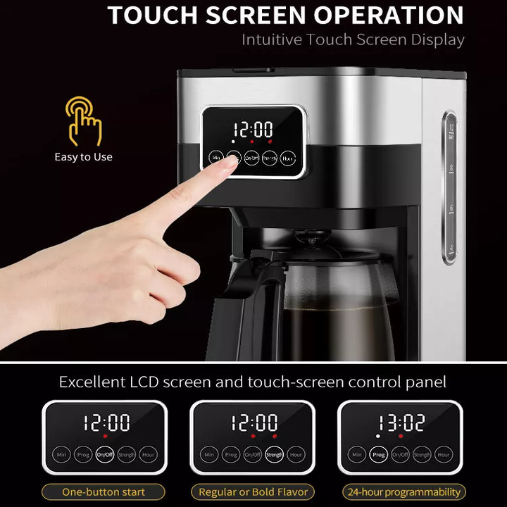 - Bảng điều khiển màn hình LCD của máy pha cà phê có thể hiển thị chế độ pha, thời gian pha và lựa chọn cường độ pha