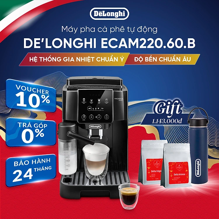 Máy pha cà phê tự động DeLonghi Magnifica Start ECAM220.60.B - Hàng Chính Hãng