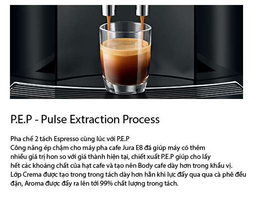 Pulse Extraction Process (P.E.P. ) tối ưu hóa thời gian chiết xuất để đảm bảo chất lượng cà phê theo phong cách barista chuyên nghiệp.LỢI ÍCH ĐẶC BIỆT