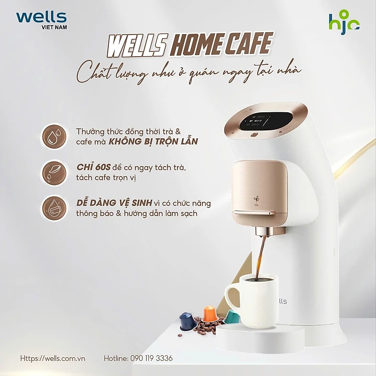 Máy pha viên nén Trà và Cafe Wells Home Cafe [TẶNG KÈM Khay đựng viên nén] - Hàng chính hãng