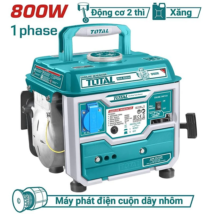 MÁY PHÁT ĐIỆN DÙNG XĂNG PHA NHỚT BH 12THÁNG TOTAL TP18001 - HÀNG CHÍNH HÃNG