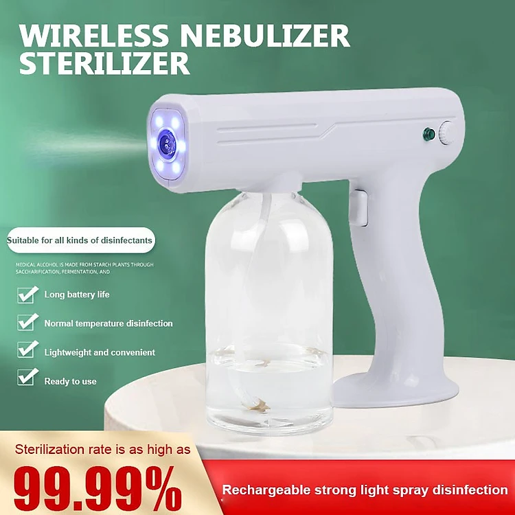 4. Bình dung tích lớn, có thể điều chỉnh thời gian điều khiển theo lượng sương mù. bạn có thể mua các loại tinh dầu yêu thích của mình để đạt được nhiều hiệu ứng tốt khác nhau. điều khiển nhiệt độ thông minh, chống khô nóng. Phù hợp với các loại dung dịch: cồn, chất lỏng khử trùng, chất khử trùng, nước. Cách thức hoạt động: Dung dịch chứa trong bình sẽ được máy nén phun ra dưới dạng sương mù + kết hợp với ánh sang Blueray để sát khuẩn một cách triệt để, đảm bảo đến 99.9% môi trường sạch. Sản phẩm được cấp phép sử dụng trong y tế trong một số trường hợp Màu: trắng Battery: pin sạc 2600mAh tích hợp Kích thước: xấp xỉ 25.5x24cm Chất liệu: nhựa Dung tích bình nước: 800ml đường kính phun: 26nm Điện áp định mức: 110V ~ 240V Điện áp nguồn: DC 5V /2A Thời gian sử dụng: khoảng 180 phút Thời gian sạc: 120 phút bao gồm gói hàng: 1 * Bình xịt khử trùng Thiết kế không dây: nó được chuẩn bị đặc biệt cho nhân viên văn phòng và khách du lịch. Thiết kế không dây tiện lợi giúp loại bỏ nhu cầu tìm kiếm các cửa hàng ở khắp mọi nơi khi mua sắm hoặc đi du lịch chạy bằng pin: Máy Phun được cung cấp năng lượng bởi pin tích hợp và máy phun hỗ trợ sạc. Do đó, bạn không cần phải sử dụng các cửa hàng mọi lúc. Sản phẩm có thể hoạt động trong 1.5 giờ cho một lần sạc hiệu ứng phun tuyệt vời-Máy phun sử dụng nguyên lý hơi nước siêu nóng, và áp lực nước lỏng vào các phân tử siêu nóng khí. Do đó, khi bạn ấn máy phun, áp suất không khí mạnh sẽ phun ra. Các giọt sương mù đồng đều