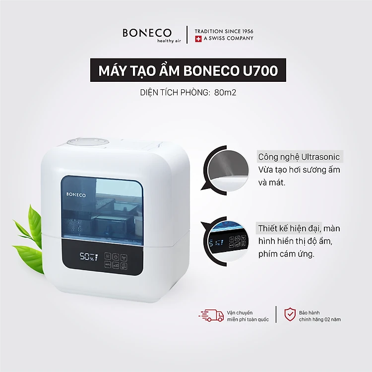 Máy tạo ẩm BONECO U700 mang lại độ ẩm lý tưởng cho căn phòng giúp bảo vệ hệ hô hấp, bảo vệ làn da, sức đề kháng đồng thời giúp giảm lượng bụi gây ô nhiễm không khí.