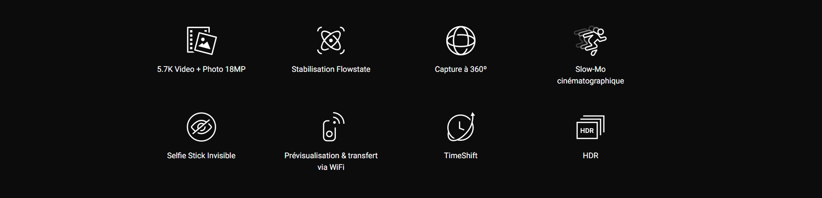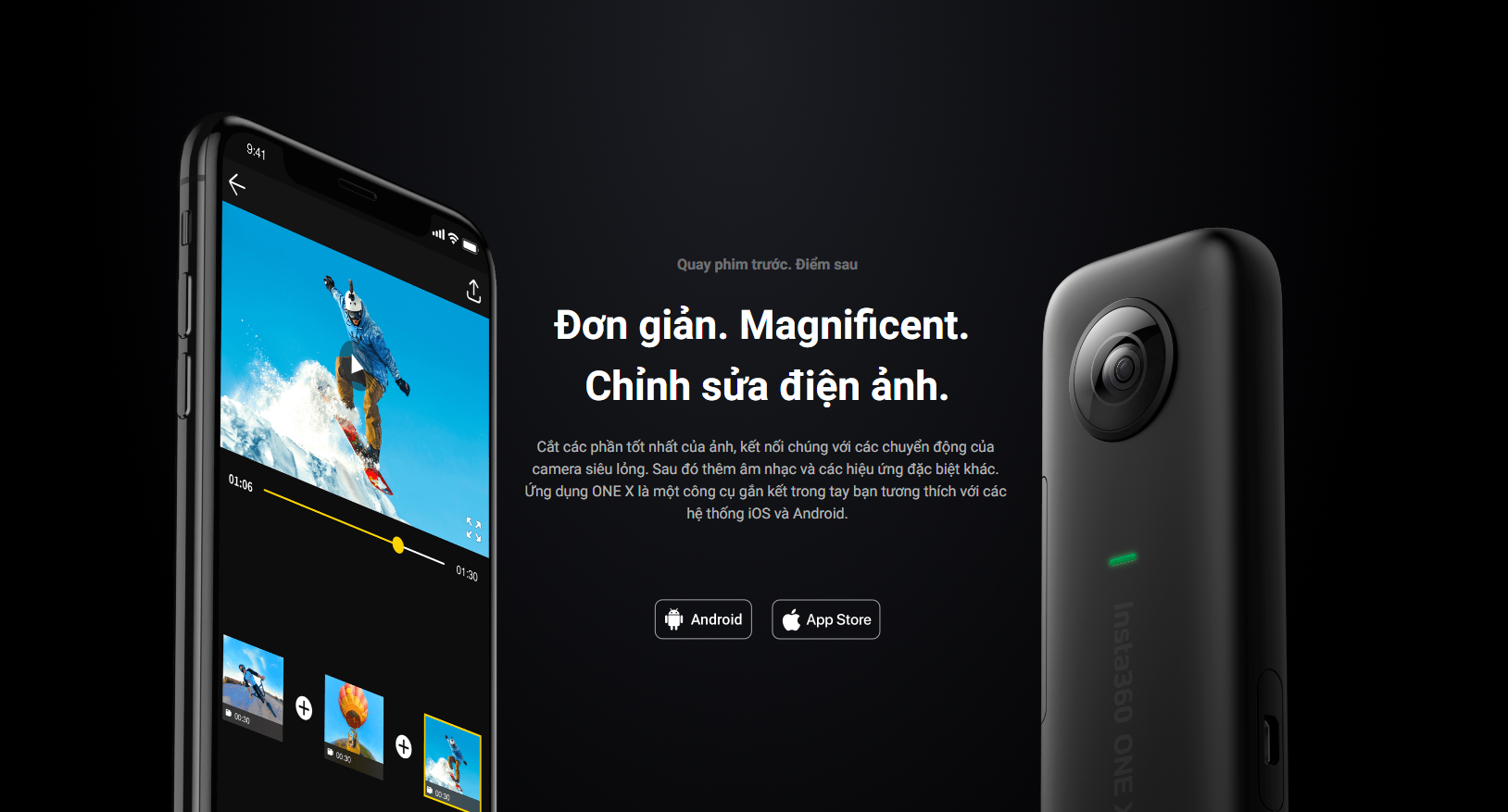 Giúp điều khiển thời gian và phối cảnh một cách dễ dàng. Với sự ổn định 360 độ, không còn điều gì giới hạn bạn lại nữa! Đánh dấu lại các phần tuyệt nhất trong cảnh quay của bạn ở mọi hướng. Chiếc OneX kết nối chúng với các chuyển động máy ảnh siêu mịn.