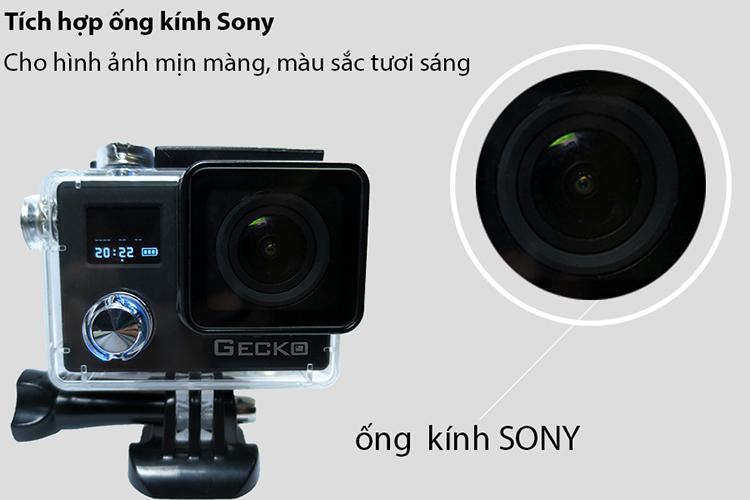 Máy Quay Hành Động Gecko S1 được trang bị COMS Sensor SONY IMX 117 cùng chipset Novatek 96.660 cực chất giúp bạn bắt trọn mọi khung hình sắc màu và sống động.