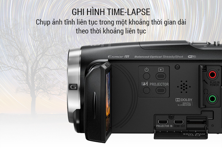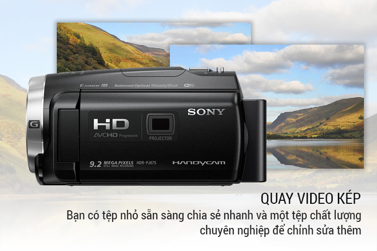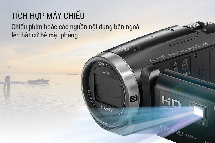Sony HDR PJ675E được trang bị máy chiếu tích hợp 25lm (màn hình lên tới 100inch). Bạn chỉ cần chiếu phim hoặc các nguồn nội dung bên ngoài lên bất cứ bề mặt phẳng nào có sẵn.