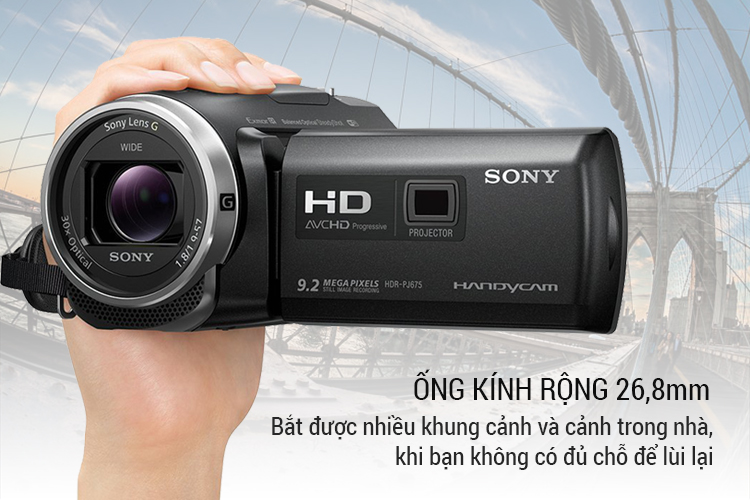 Dù bạn đang quay phim hay chụp ảnh tĩnh, ống kính góc rộng đẳng cấp hàng đầu này có thể giúp bạn nắm bắt được nhiều khung cảnh và cảnh trong nhà, khi bạn không có đủ chỗ để lùi lại. Ngay cả khi không có ống kính chuyển đổi rộng, máy quay Sony HDR PJ675E có thể ghi hình rộng tới 26,8 mm (tỉ lệ khung hình 16:9) trong chế độ quay phim.