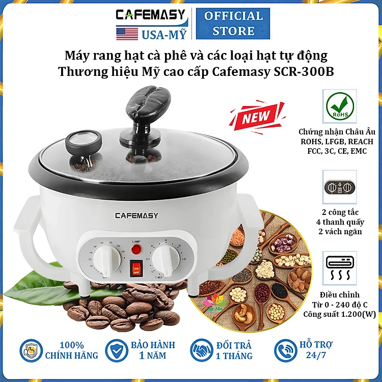 Máy rang hạt cà phê và các loại hạt tự động tích hợp điều chỉnh thời gian thương hiệu Mỹ Cafemasy SCR-300B - Hàng Chính Hãng