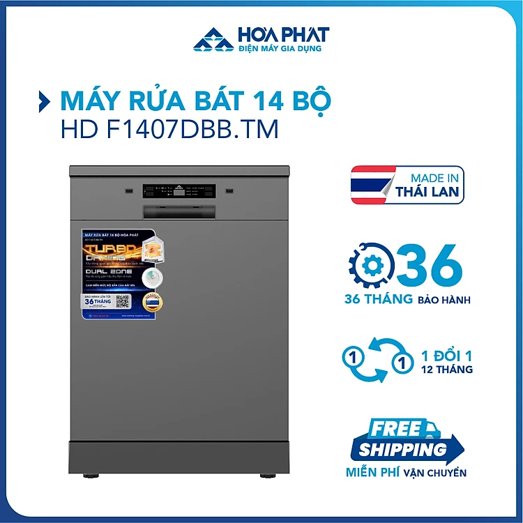 Máy rửa bát 14 bộ Hòa Phát HD F1407DBB.TM - Bảo hành 36 tháng - Hàng chính hãng