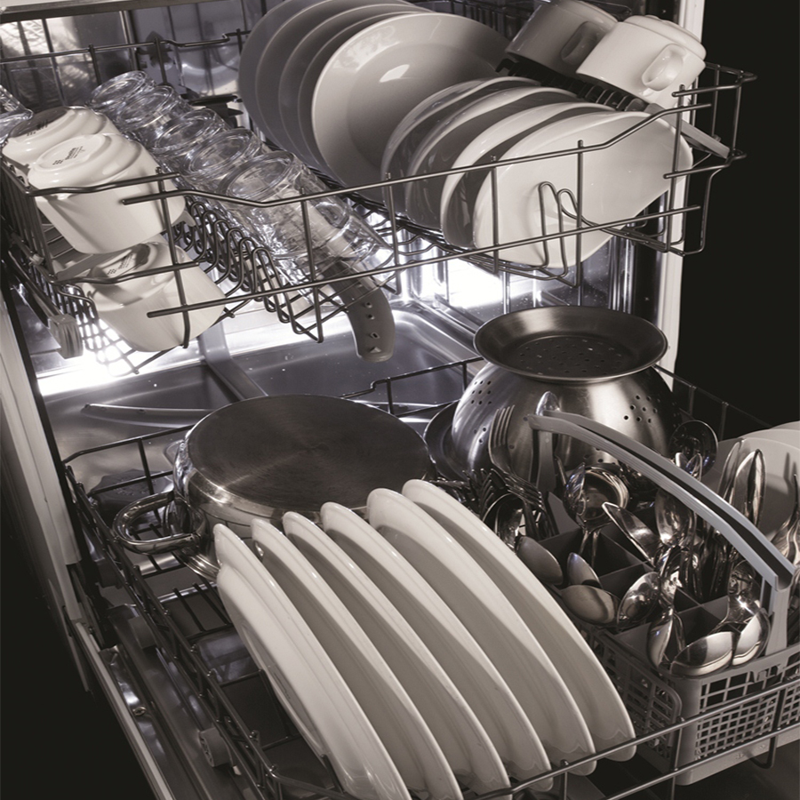 Máy có ngăn chứa để được 10 bộ bát đĩa. Chế độ bán tải có thể dùng được cho ngăn trên hoặc ngăn dưới hoặc cả hai ngăn. Ngăn trên có thể điều chỉnh được độ cao, ngoài ra còn có ngăn riêng thiết kế để đồ dao kéo.
