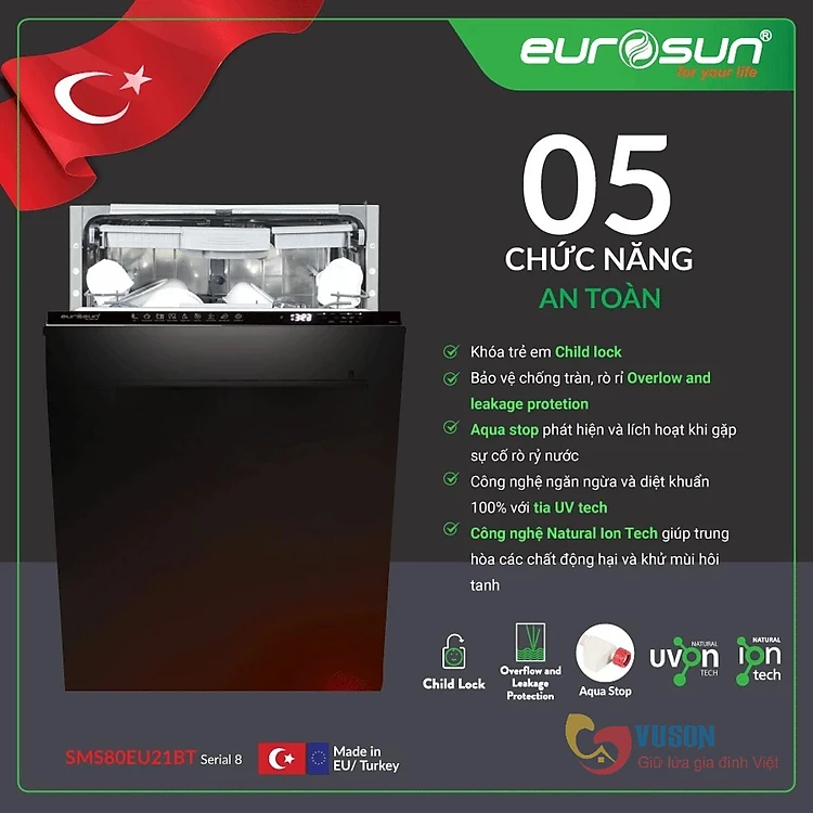 Máy rửa bát Eurosun SMS80EU21BT - Hàng chính hãng