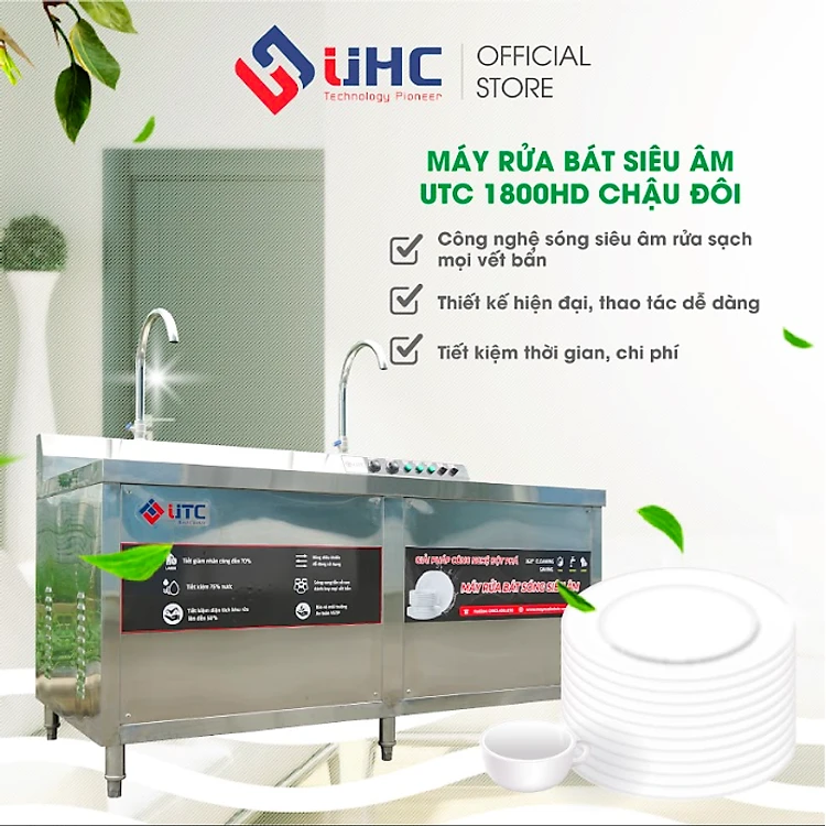 Máy rửa bát sóng siêu âm UTC 1800HD chậu đôI - Hàng chính hãng