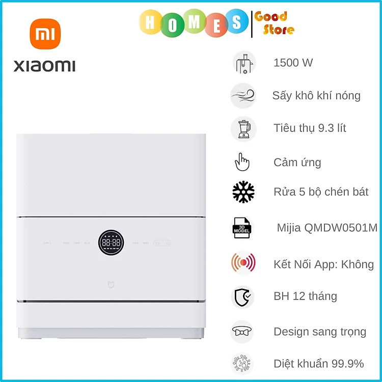 Máy rửa bát để bàn thông minh Mijia S1 có chiều sâu thân máy chỉ là 350mm và chiều rộng thân máy là 550mm, chiếm khoảng 0,19 mét vuông mặt bàn; nó có thể rửa 5 bộ đồ ăn tiêu chuẩn cùng một lúc, tổng cộng là 39 mảnh của bộ đồ ăn .