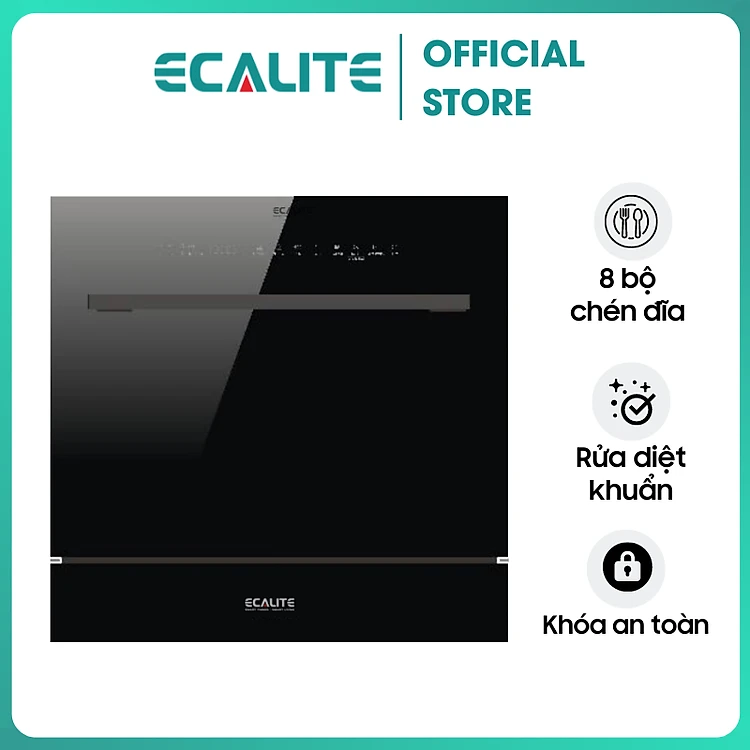 Máy Rửa Chén Ecalite EDW-UF6080BL (8 Bộ) - Có Rửa Điệt Khuẩn - Lắp Bán Âm Cực Gọn - Điều Khiển Cảm Ứng - Hàng Chính Hãng