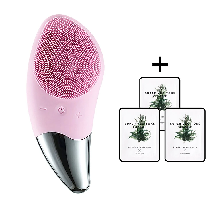 Máy Rửa Mặt Mini Massage Làm Sạch Sâu Tích Hợp Sóng Âm BR-1020 + Tặng 3 gói sữa rửa mặt thải độc Super Vegitoks Cleanser 3ml