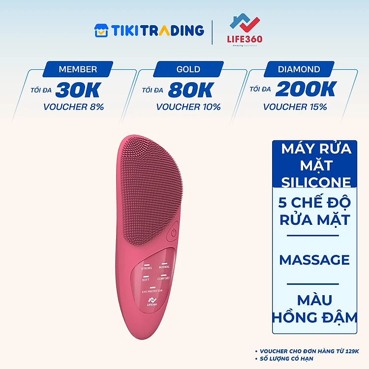 Máy Rửa Mặt Silicone Siêu Mềm Life360 LE-MRM22 với 5 Chế Độ Rửa Mặt Sạch Sâu, Massage và Chườm nóng vùng mắt